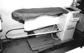 WSK Drum-Ironing-Machine type 401 Working width: 600 mm • Output-boosting continuous feed principle • Material transport on special silicon-coated conveyor belt • Ideal feed-in angle, thus the material to be ironed is not disarranged. • Long elastic contact zone for heating the adhesive • Adaptable strip-off and lay-aside System • Electronic temperature control • Automatic edge control of conveyor belt • Pneumatic pressure control • Reversing switch. |