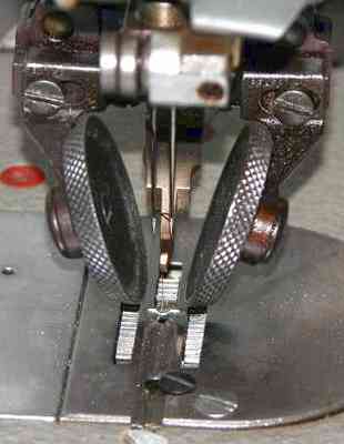 Zweinadel- Flachmaschine, Fadenabschneider, angetriebener Rollfuß |