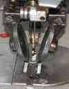 Zweinadel- Säulenmaschine, Futterkantier von unten, 2mm Nadelabstand. |