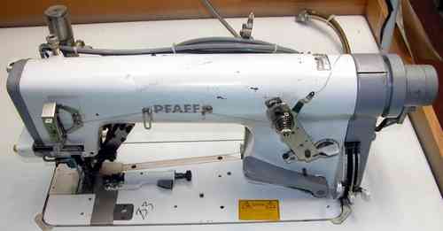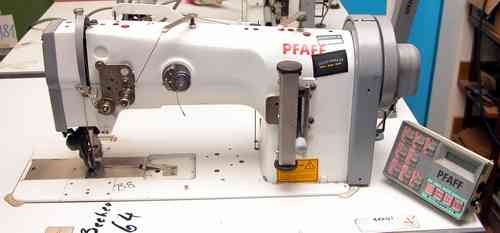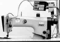 Pfaff 441 Single-needle fancy and assembly seams • Top quality fine fancy seam and general stitching operations. Features • The driven roller presser with the wheel and needle feed stitches over thick sections with ease. • No material shift. • Consistent stitch Iength. • Adjustable take-up for particularly elastic threads. • Graduated stitch length setting. • Short thread ends (approx. 11 mm). • Automatic presser foot with intermediate lifting via knee lever. • New hook and needle bar lubrication with fixed metering. Specifications • Maximum sewing speed: 3000 s.p.m. • Maximum stitch length: 2.5 mm • Thread size: 30/3 synthetic |