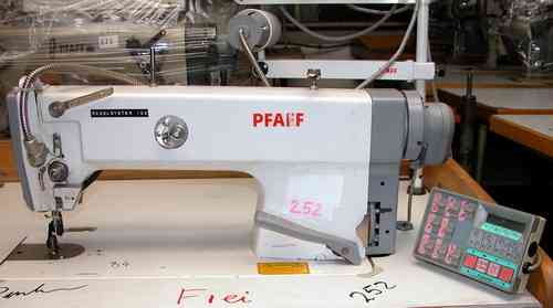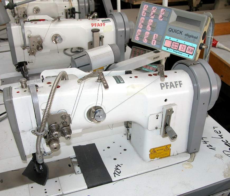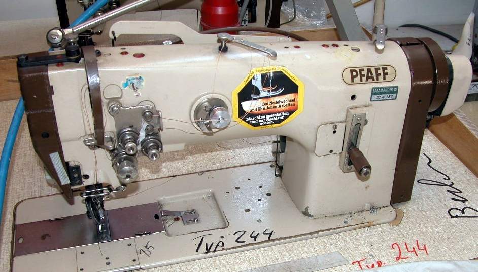Pfaff 1244 Zweinadel Grobstich-Zier- und Befestigungsnähte • Der angetriebene Rollfuß in Verbindung mit dem Untertransport steppt mühelos über Quernähte und Materialverdickungen hinweg, bei gleichbleibender Stichlänge. Merkmale • Ziernähte mit Stichlängen bis 8 mm. • Synthetikfäden bis zu 11/4 oder Umspinnzwirne bis 11/6 lassen sich problemlos verarbeiten. • Vergrößerte Spulenkapazität mit ca. 60% höherer Bevorratung • Verschiebungsfreies Arbeiten, sicheres Aufnähen von Teilen. • Automatische Presserfußlüftung entlastet die Näherin. Technische Daten • Stichzahl max.: 1700/min. • Stichlänge max.: 8 mm (N8) • Nadelabstand: 1,6 - 7,2 mm (Standard: 2,0; 2,4)